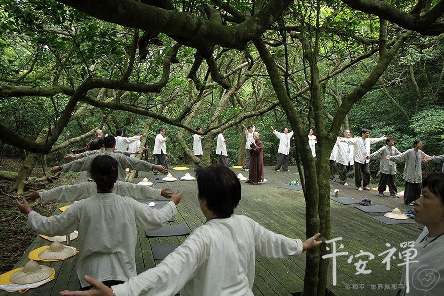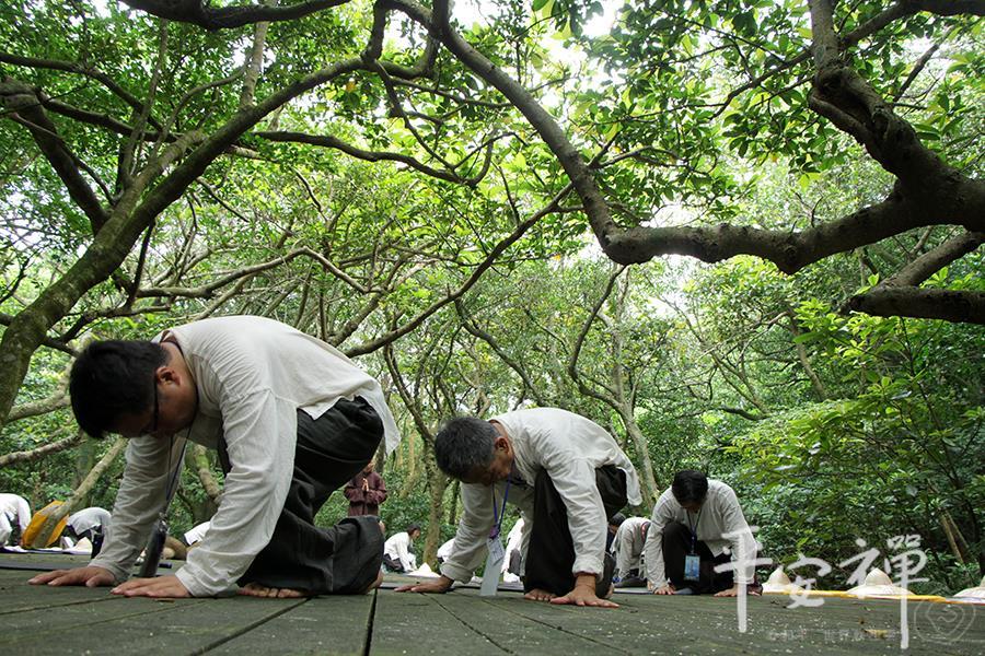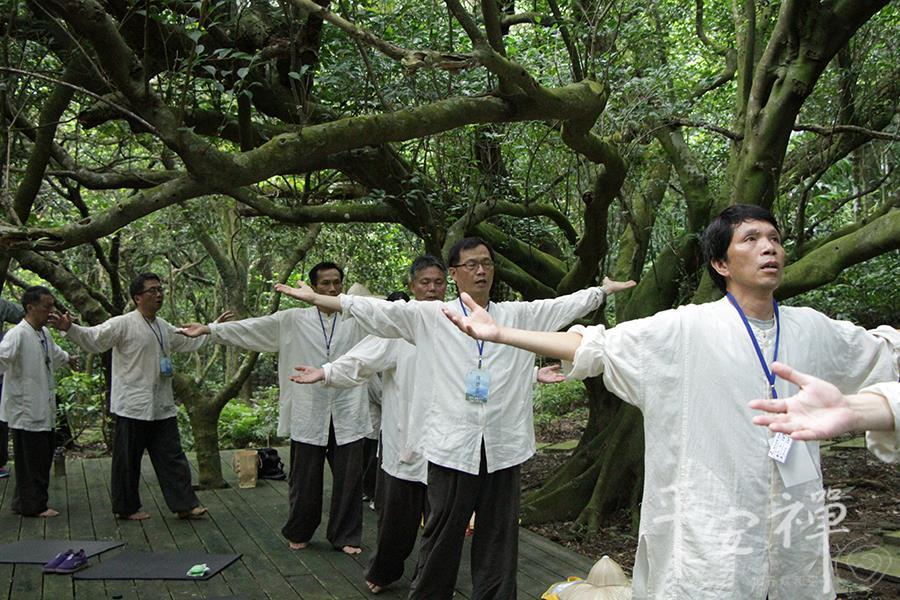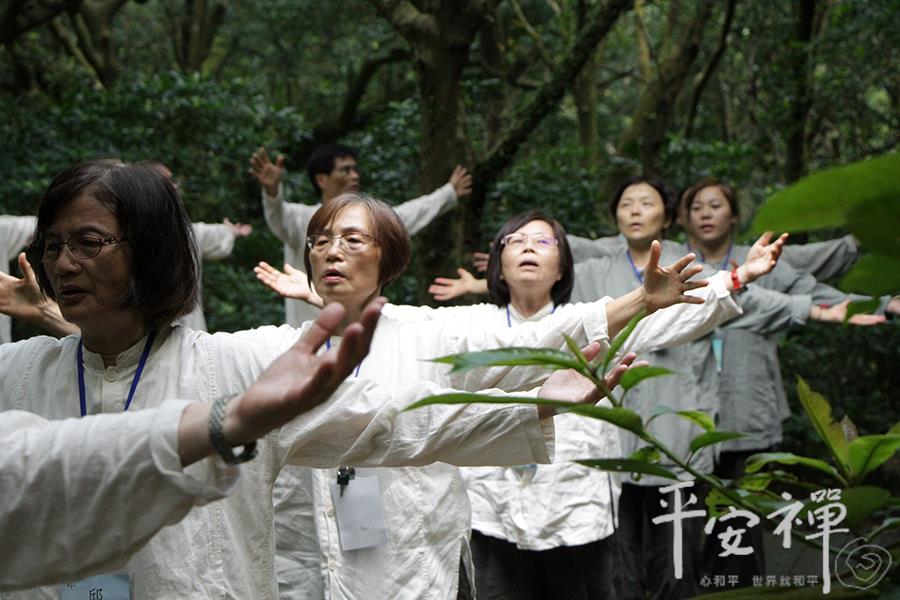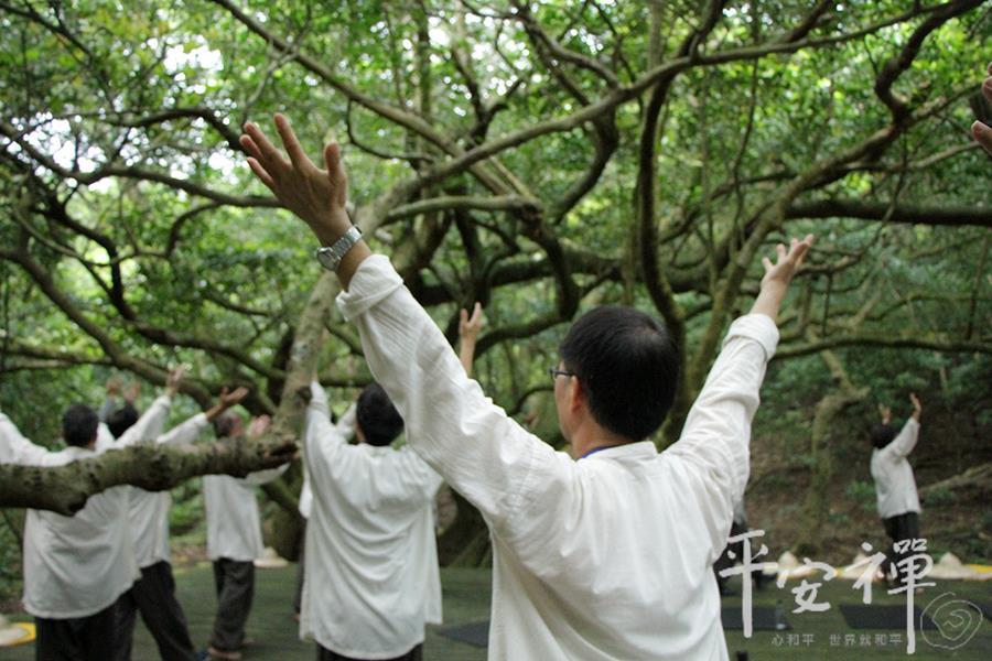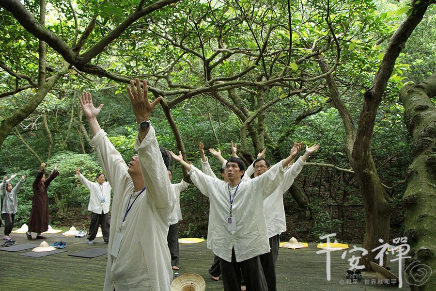 教育领导生活禅体验营,即使到了最後一天,校长们依然如实地早起练习平安功法,让身与心都放松、放慢、保持觉知。