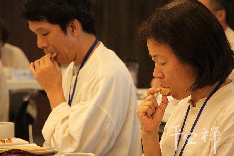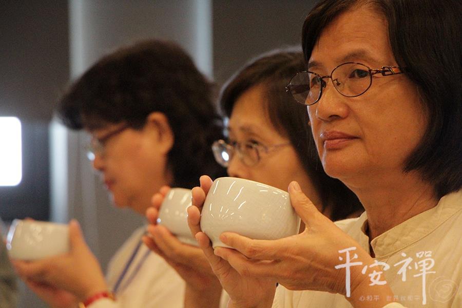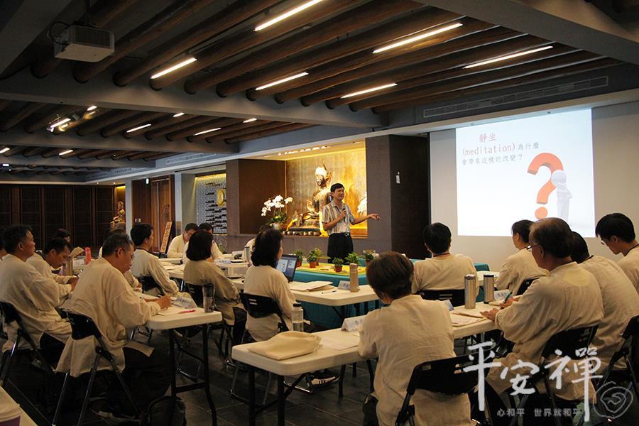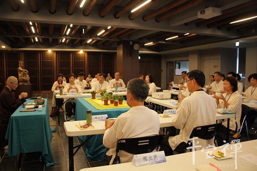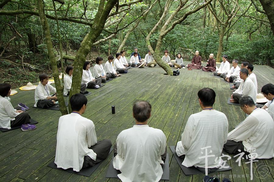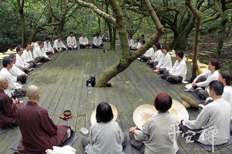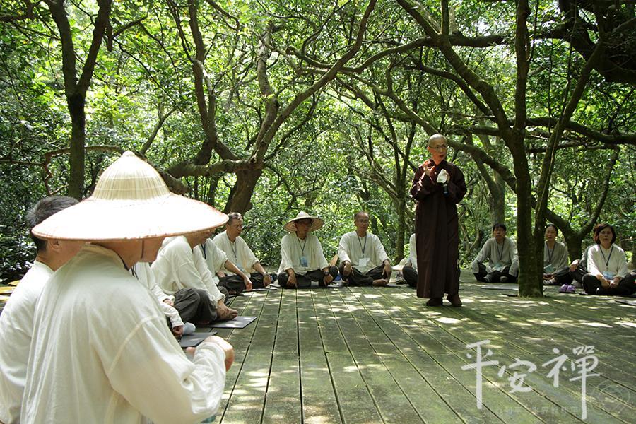 教育领导生活禅体验营,即使到了最後一天,校长们依然如实地早起练习平安功法,让身与心都放松、放慢、保持觉知。